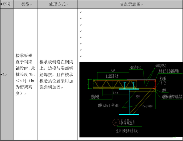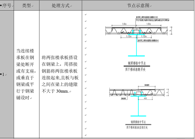 (5)钢筋桁架平行于钢梁处,底模在钢梁上与另一张楼板搭接需满铺咬合;钢筋桁架垂直于钢梁处,模板端部的竖向钢筋在钢梁上与另一张楼板端头竖向钢筋连接处距离不大于30mm。